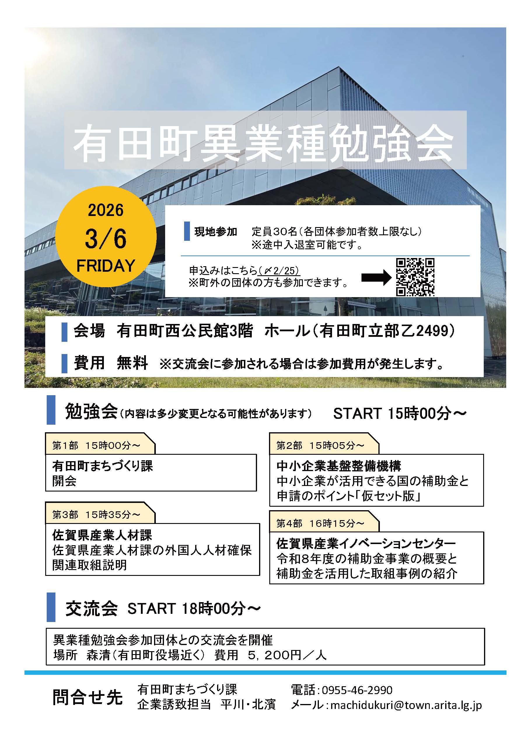 【2026年3月6日】有田町異業種勉強会が開催されます